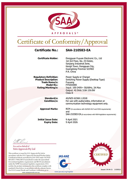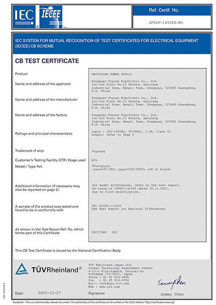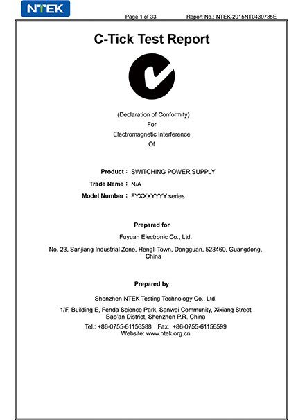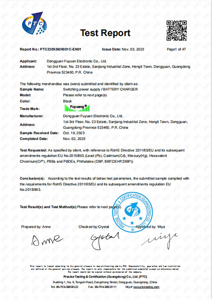 Fuyuan Electronic Co.,Ltd была создана в 2005 году, которая является профессиональным производителем, в основном специализируется на зарядное устройство, адаптер питания и LED питания. Обладая более чем 30 - летним опытом в области машиностроения, компания Fuyuan специализируется на производстве от 24 до 1200 вт высокоэнергетических продуктов. Все продукты имеют глобальные сертификаты: UL, CUL, FCC, GS(TUV), CE, EMC, CB, KC, KCC, PSE, SAA, C-TICK, RCM, CCC, RoHs, Reach и др.
